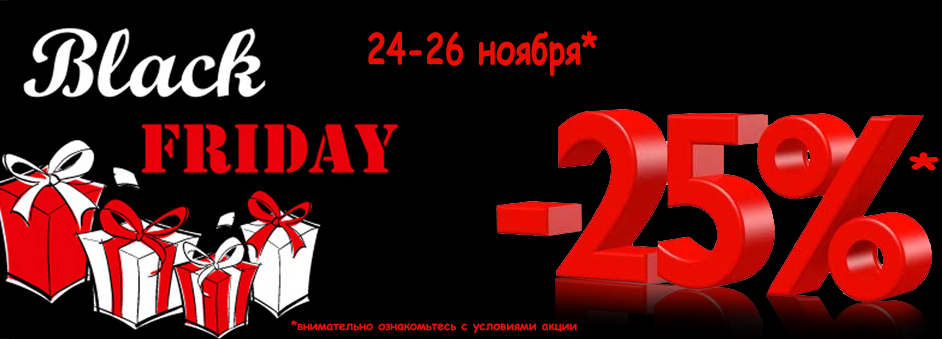 Cкидка 25%* действует 24-26 ноября на товары Розничных магазинов